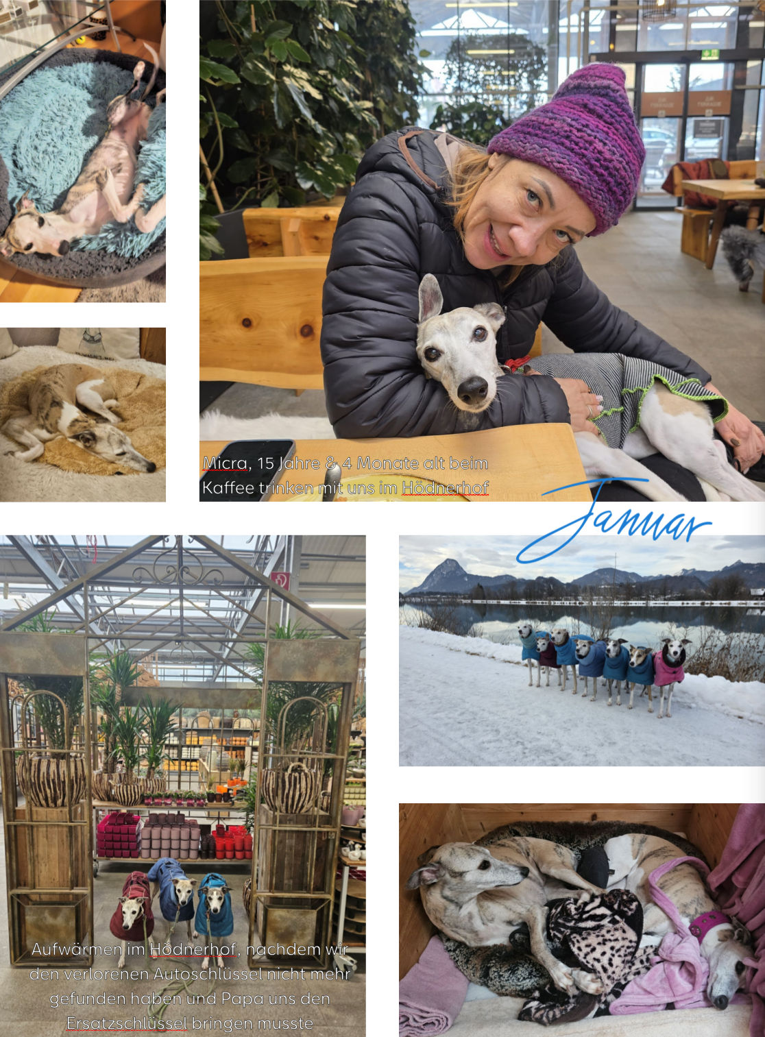 Ein paar Fotos und Videos um unser erstes Monat im Neuen Jahr zusammenzufassen. Leider haben wir vergessen Fotos von unserem Besuch bei den Niceos zu machen. Es war aber wieder so toll bei den vieren in Saalfelden. Auf diese Treffen freue ich mich immer ganz beonsers und mein Hunde genießen sie sehr! Danke Hildegard und […]